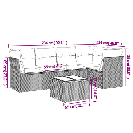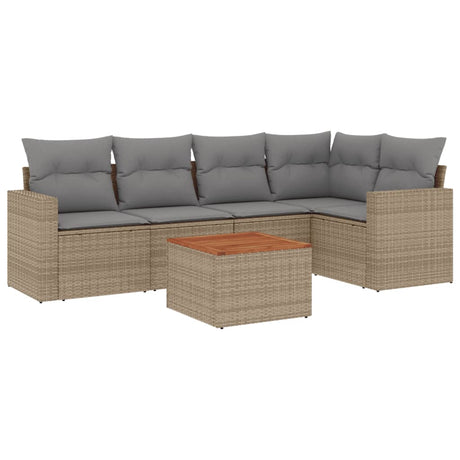 6 Piece Garden Sofa Set with Cushions Beige Poly Rattan