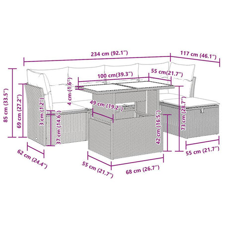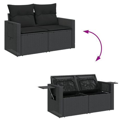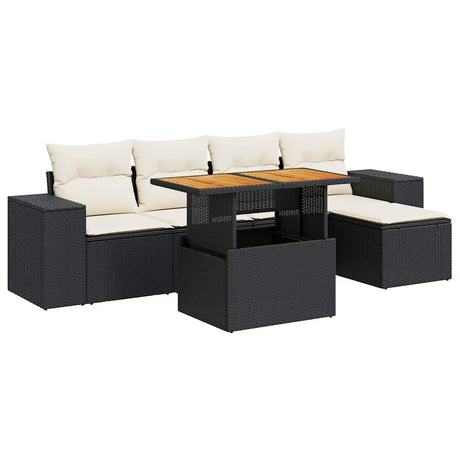 6 Piece Garden Sofa Set with Cushions Black Poly Rattan