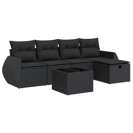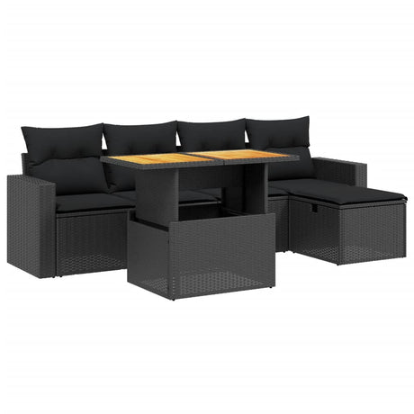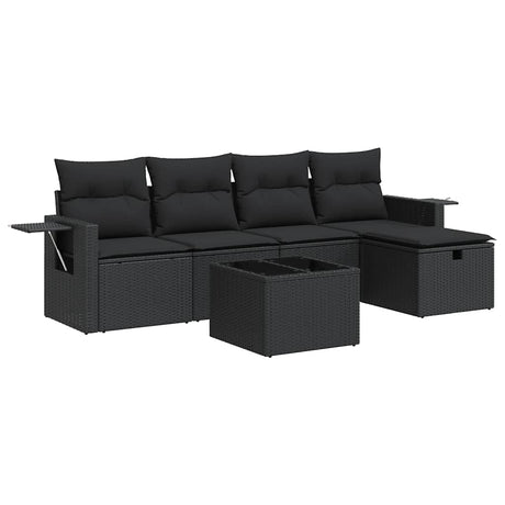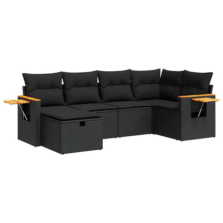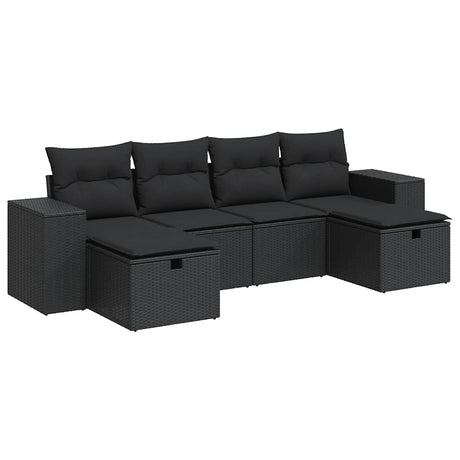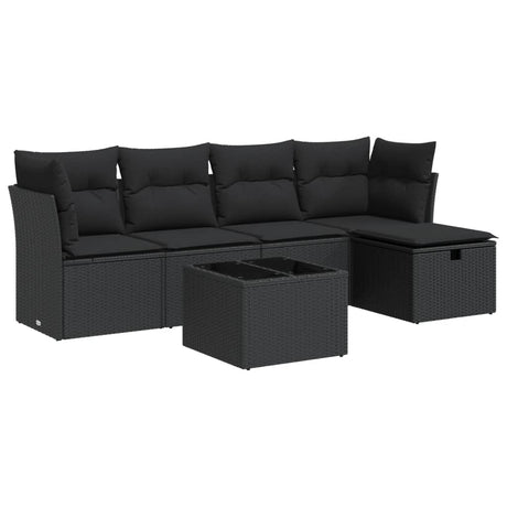 6 Piece Garden Sofa Set with Cushions Black Poly Rattan