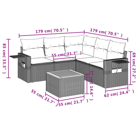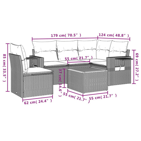 6 Piece Garden Sofa Set with Cushions Black Poly Rattan