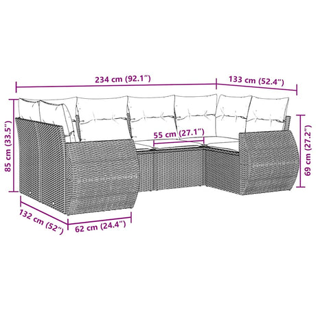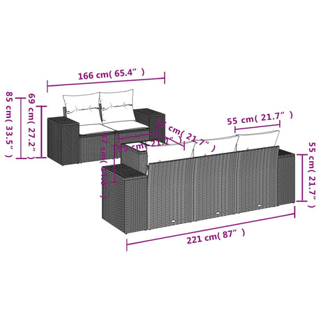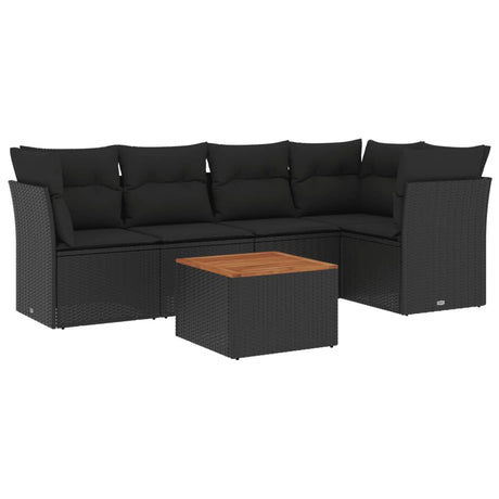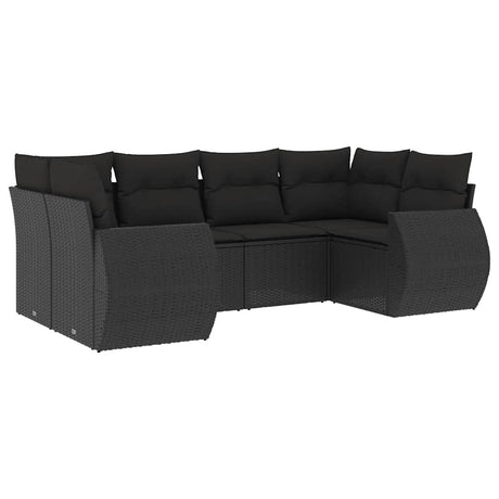 6 Piece Garden Sofa Set with Cushions Black Poly Rattan