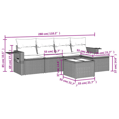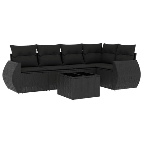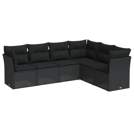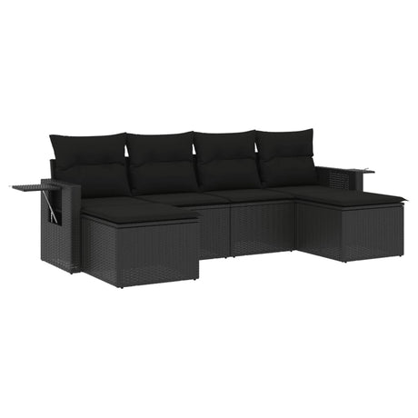 6 Piece Garden Sofa Set with Cushions Black Poly Rattan