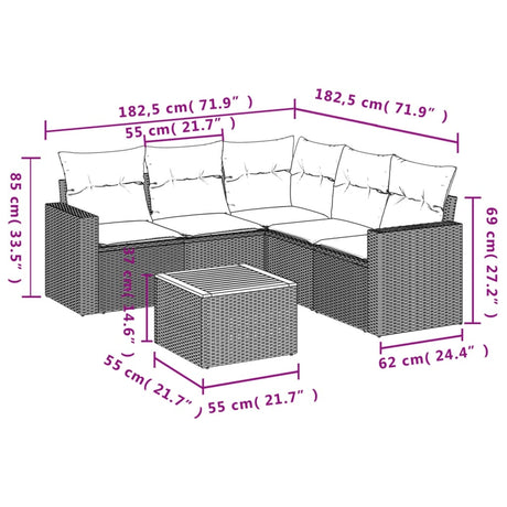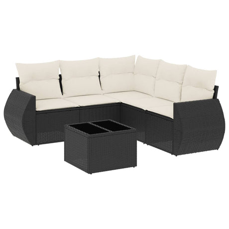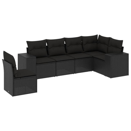 6 Piece Garden Sofa Set with Cushions Black Poly Rattan