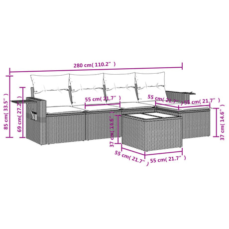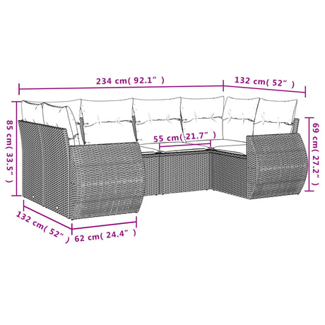 6 Piece Garden Sofa Set with Cushions Grey Poly Rattan