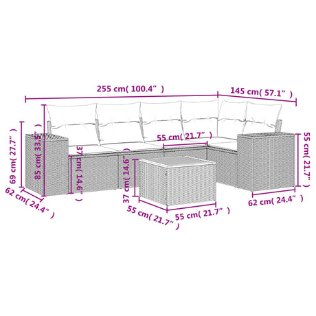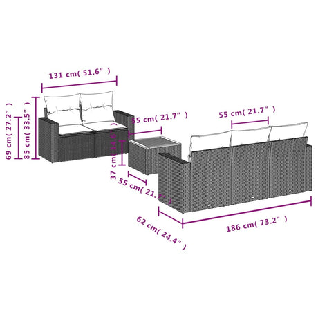 6 Piece Garden Sofa Set with Cushions Grey Poly Rattan