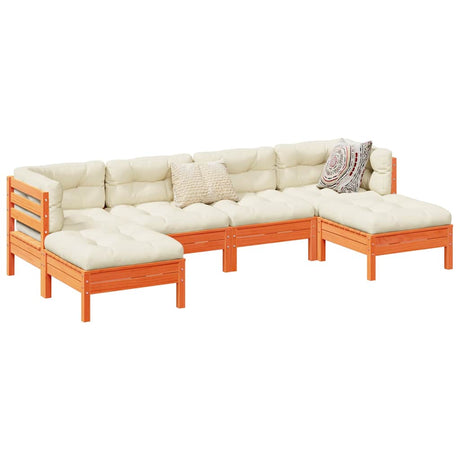 6 Piece Garden Sofa Set with Cushions Wax Brown Solid Wood Pine