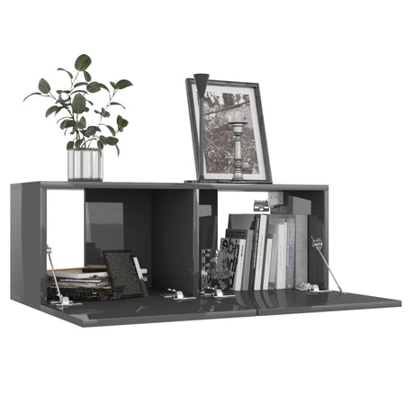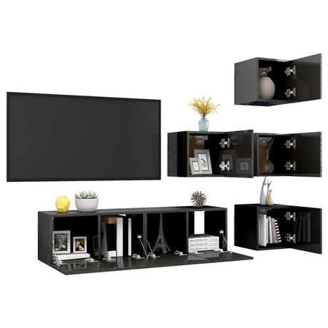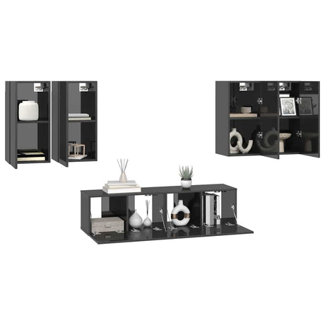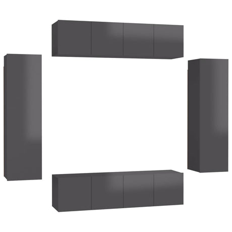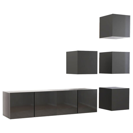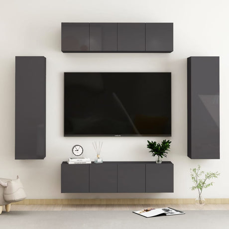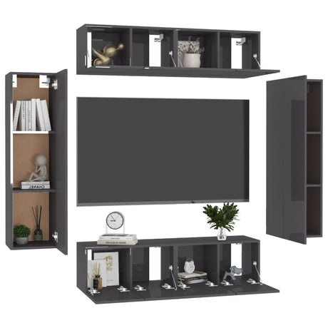 6 Piece TV Cabinet Set High Gloss Grey Engineered Wood