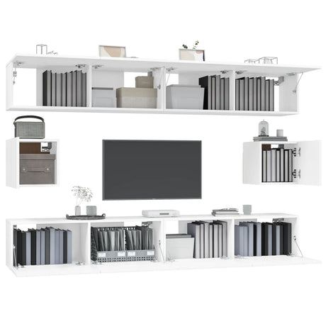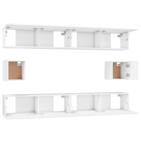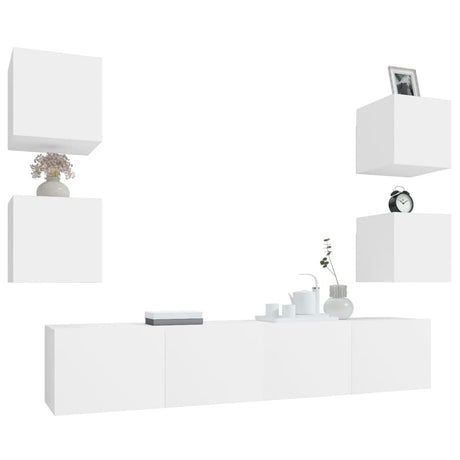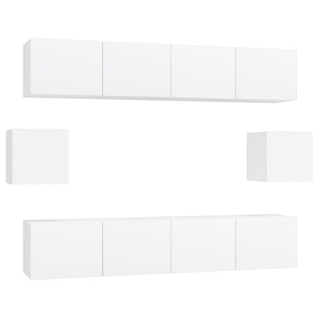 6 Piece TV Cabinet Set White Engineered Wood