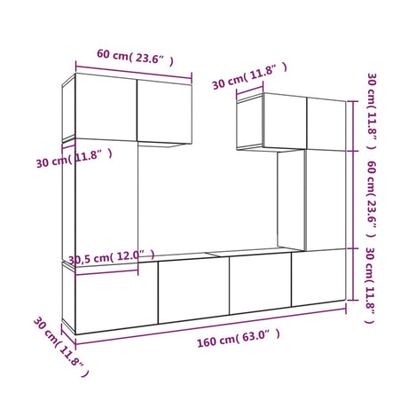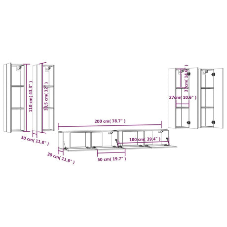 6 Piece TV Cabinet Set Sonoma Oak Engineered Wood