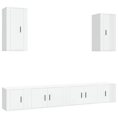 6 Piece TV Cabinet Set High Gloss White Engineered Wood
