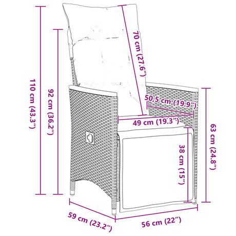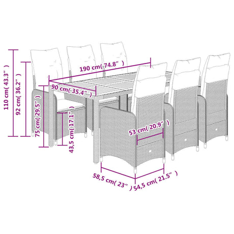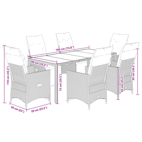 7 Piece Garden Bistro Set with Cushions Grey Poly Rattan