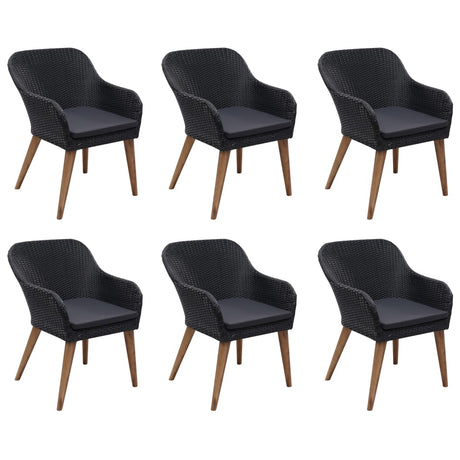 7 Piece Garden Dining Set Black and Brown Poly Rattan
