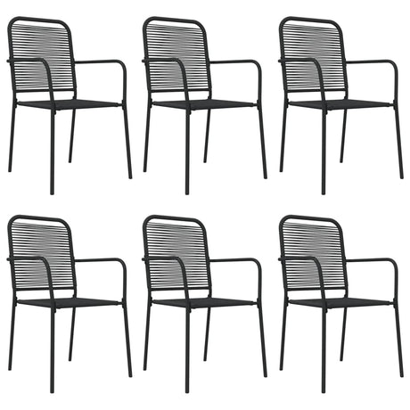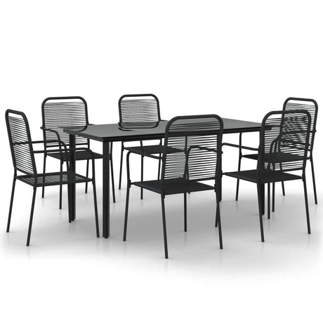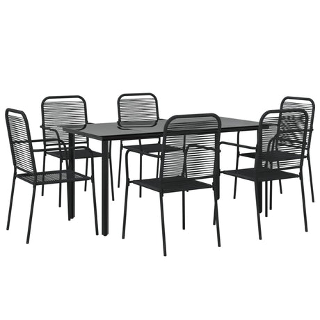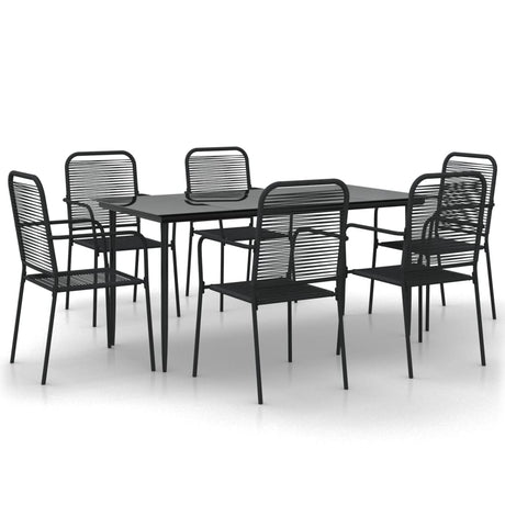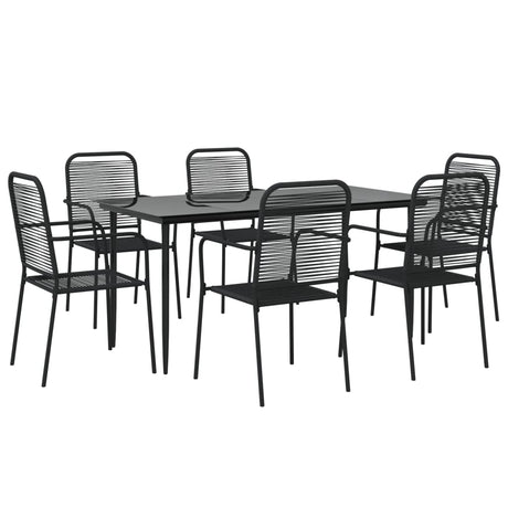7 Piece Garden Dining Set Black Cotton Rope and Steel