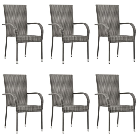 7 Piece Garden Dining Set Grey and Black Poly Rattan and Steel