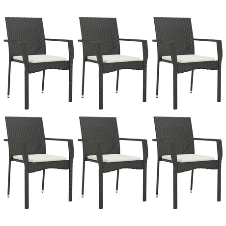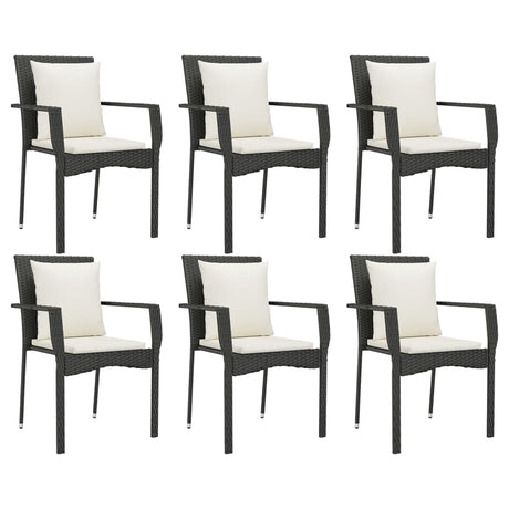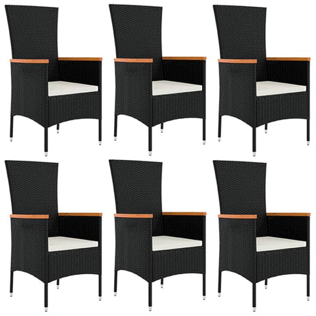 7 Piece Garden Dining Set with Cushions Black Poly Rattan