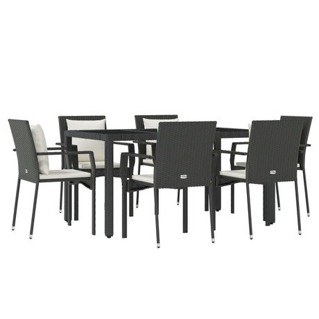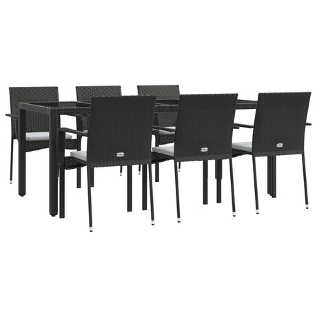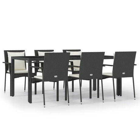 7 Piece Garden Dining Set with Cushions Black Poly Rattan Glass
