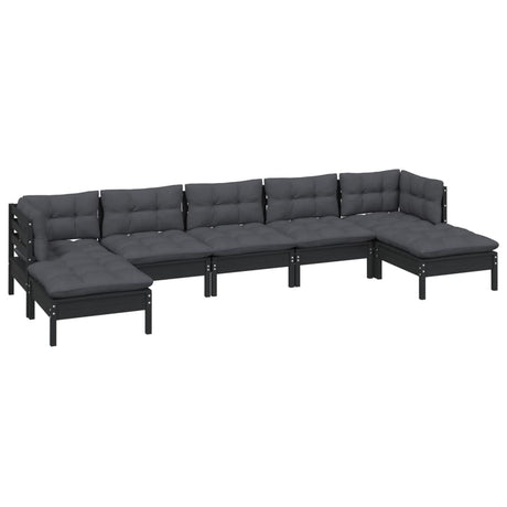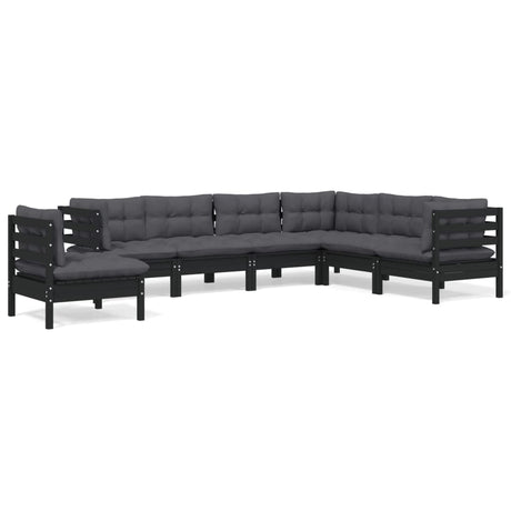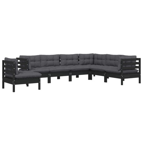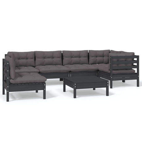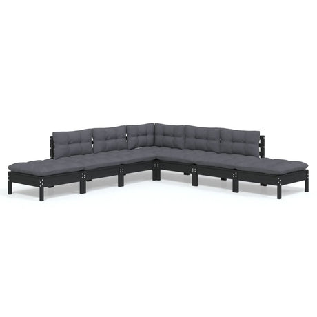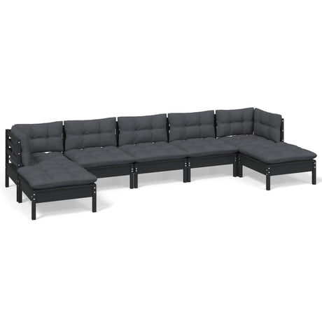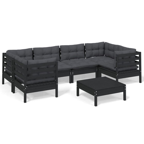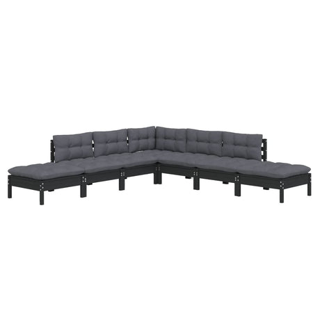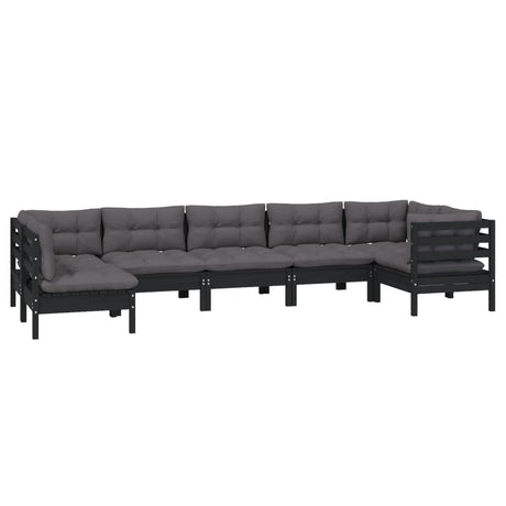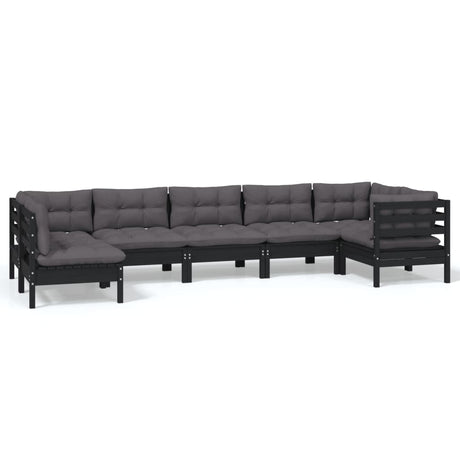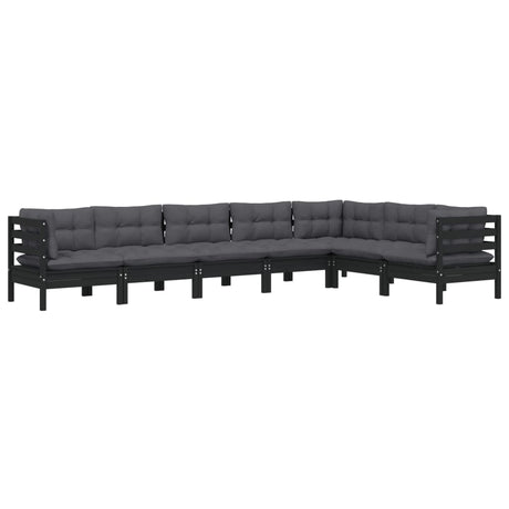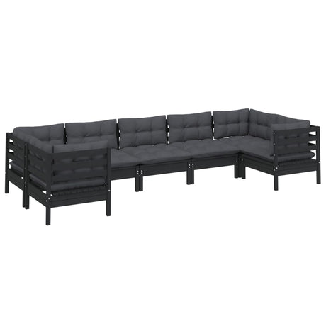 7 Piece Garden Lounge Set with Cushions Black Pinewood