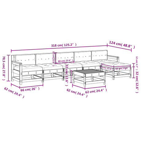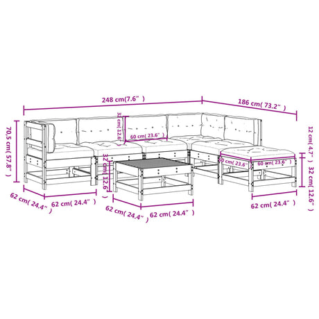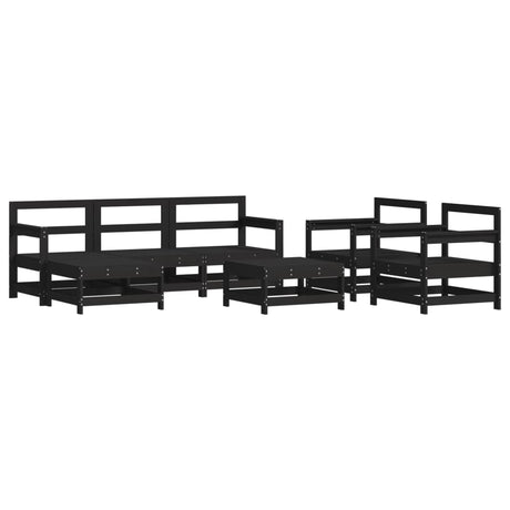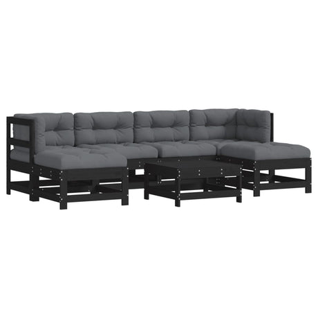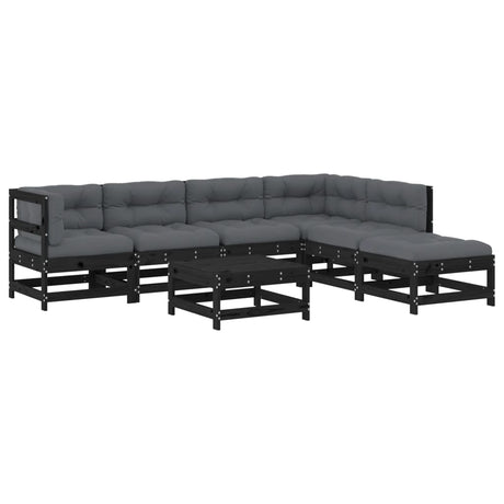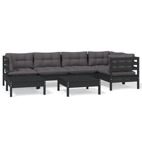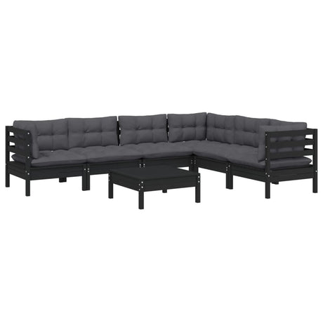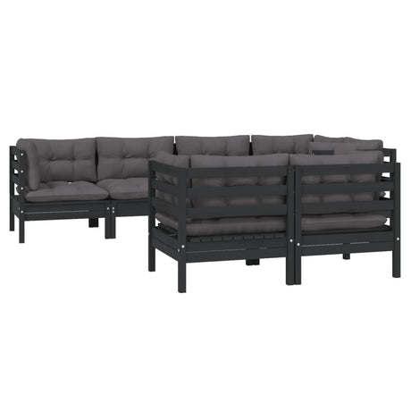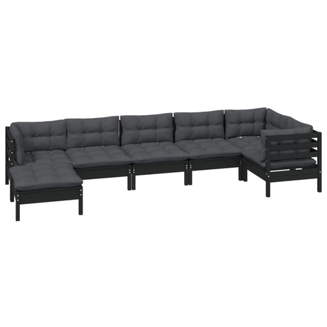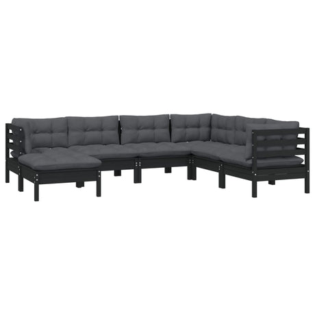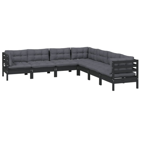 7 Piece Garden Lounge Set with Cushions Black Solid Pinewood