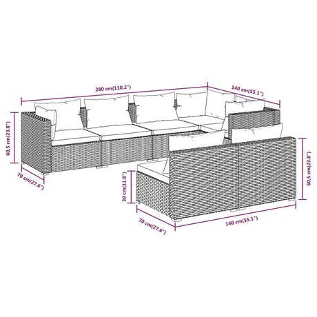 7 Piece Garden Lounge Set with Cushions Brown Poly Rattan