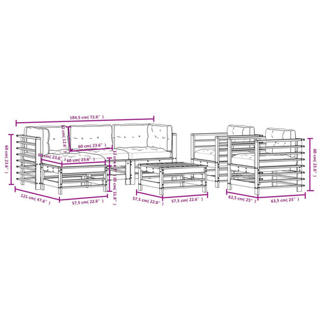 7 Piece Garden Lounge Set with Cushions Black Solid Wood