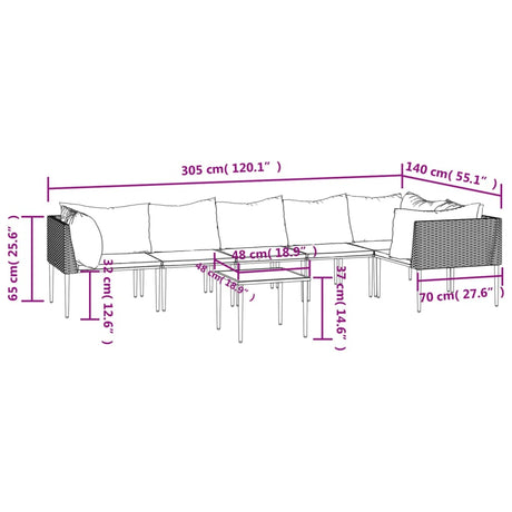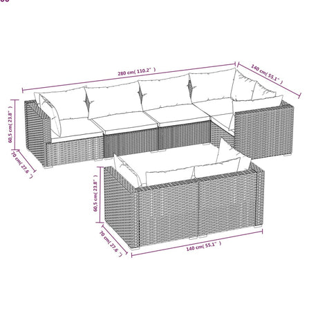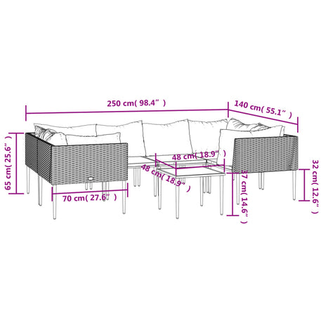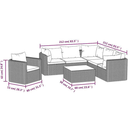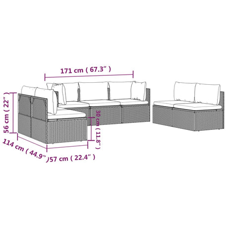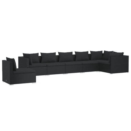 7 Piece Garden Lounge Set with Cushions Poly Rattan Black