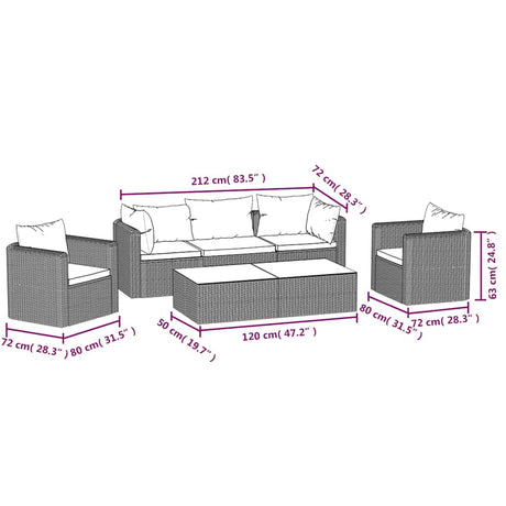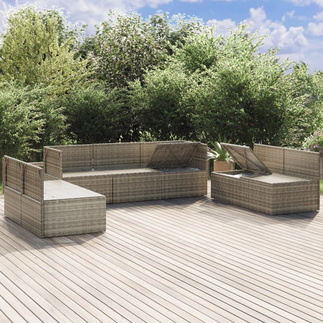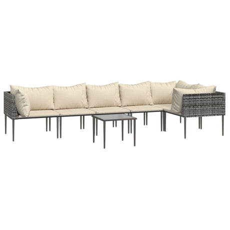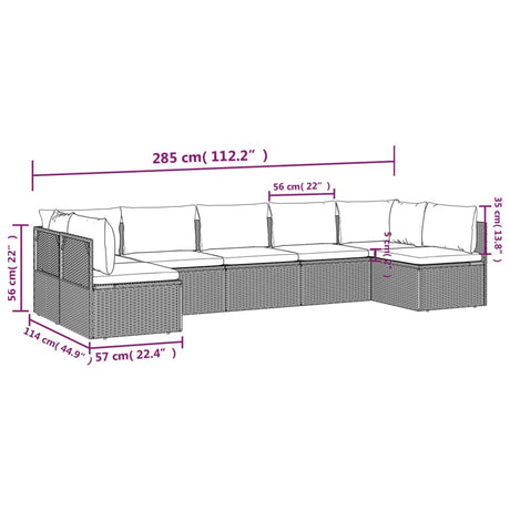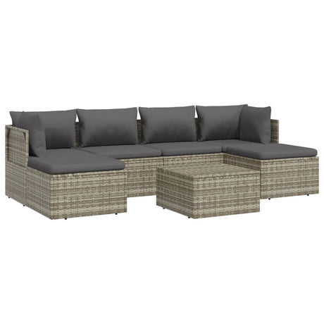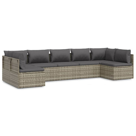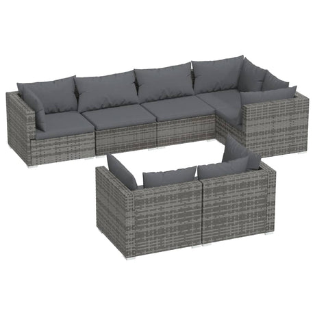 7 Piece Garden Lounge Set with Cushions Grey Poly Rattan