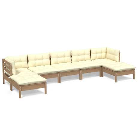 7 Piece Garden Lounge Set with Cushions Honey Brown Pinewood