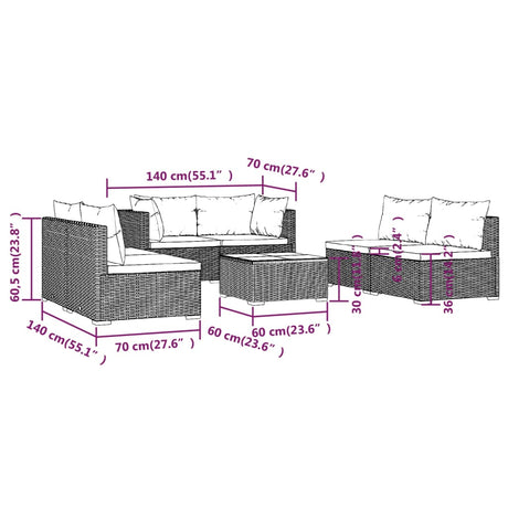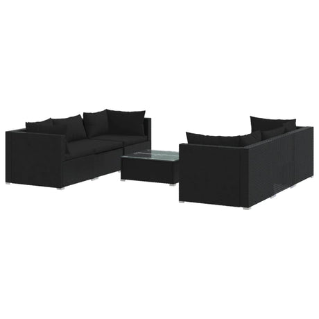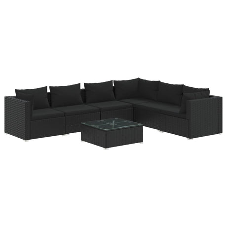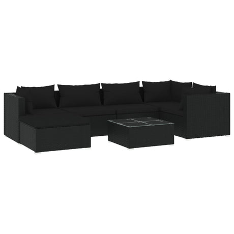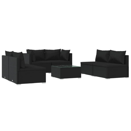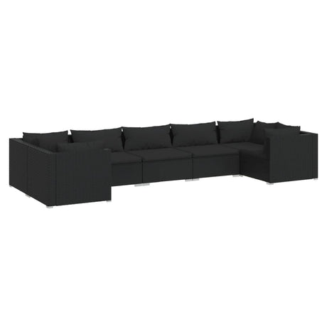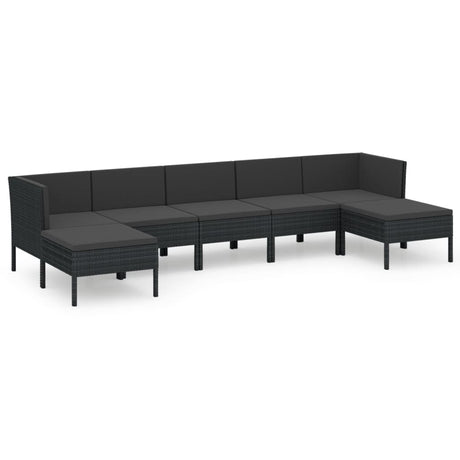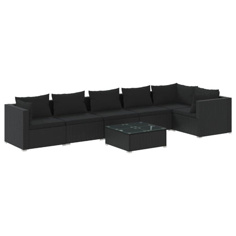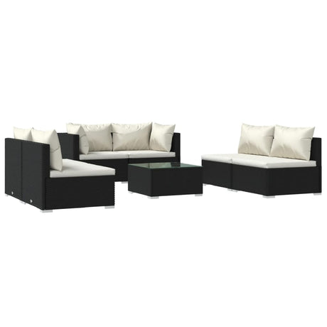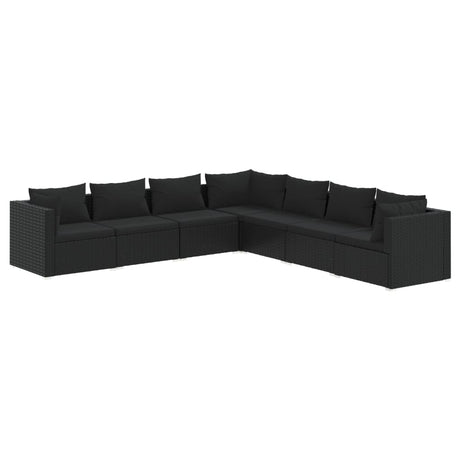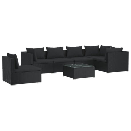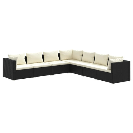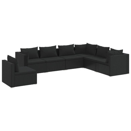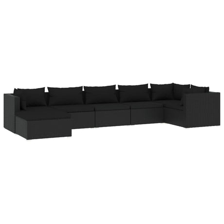 7 Piece Garden Lounge Set with Cushions Poly Rattan Black