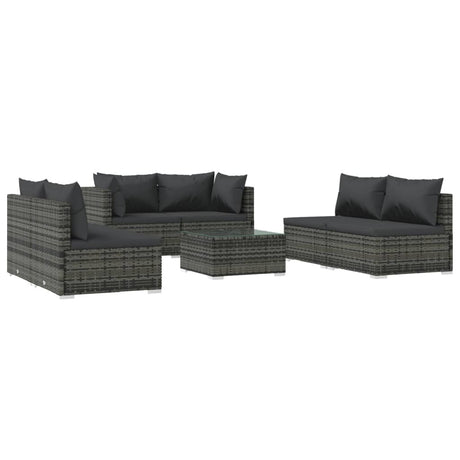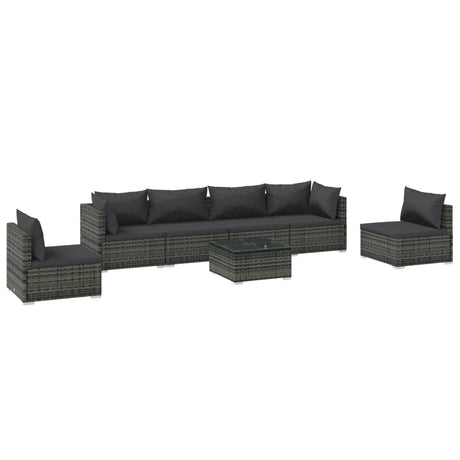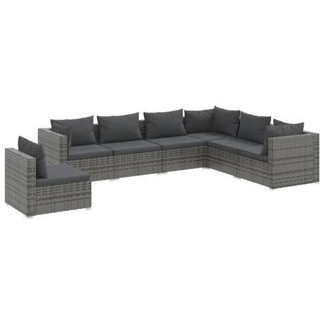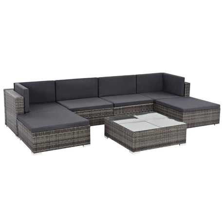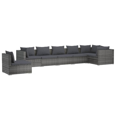 7 Piece Garden Lounge Set with Cushions Poly Rattan Grey