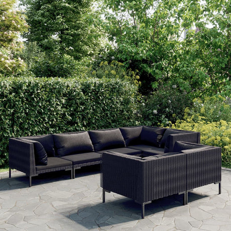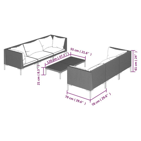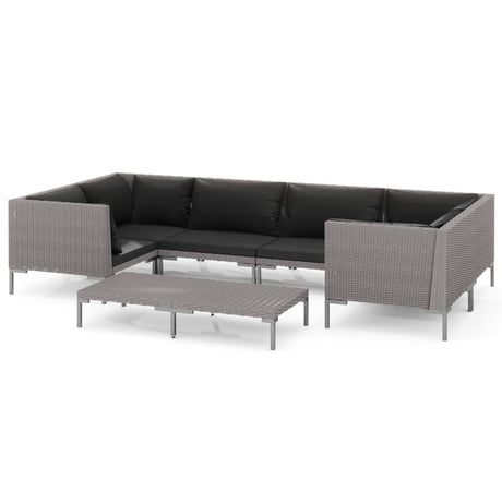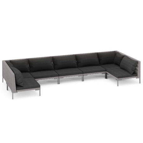 7 Piece Garden Lounge Set with Cushions Poly Rattan Dark Grey