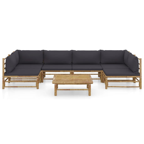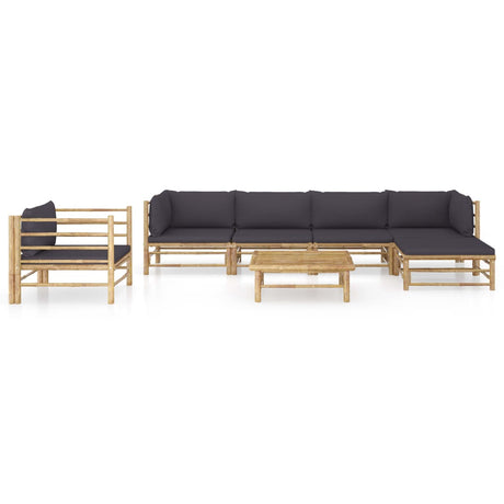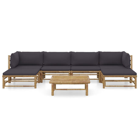 7 Piece Garden Lounge Set with Dark Grey Cushions Bamboo
