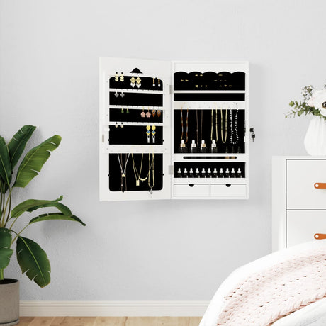 Mirror Jewellery Cabinet Wall Mounted White 37.5x10x67 cm