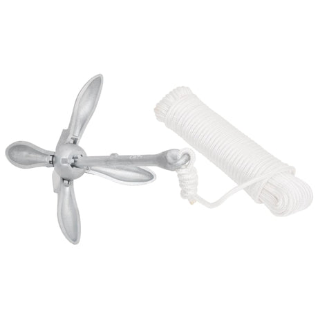 Folding Anchor with Rope Silver 4 kg Hot Dip Galvanized Cast Iron