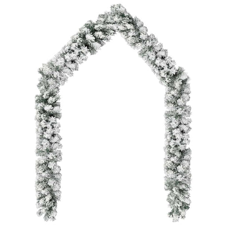 Christmas Garland with LEDs&Flocked Snow Green 5 m PVC