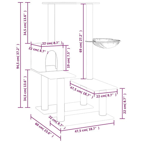 Cat Tree with Sisal Scratching Posts Light Grey 94.5 cm