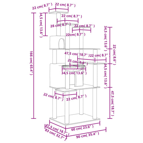 Cat Tree with Sisal Scratching Posts Cream 166 cm