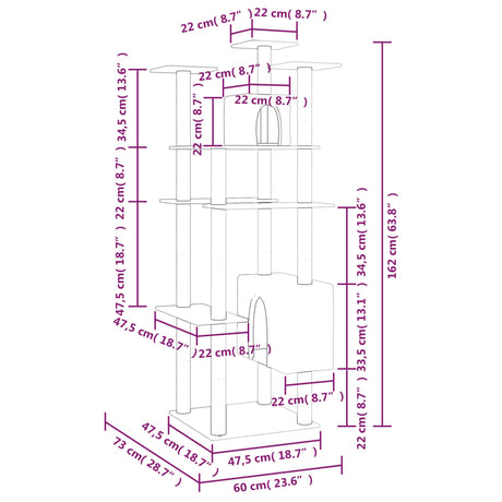 Cat Tree with Sisal Scratching Posts Light Grey 162 cm