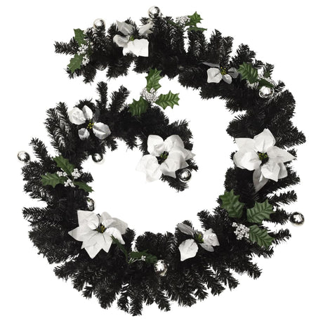 Christmas Garland with LED Lights Black 2.7 m PVC