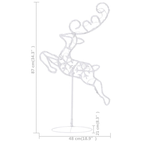 Acrylic Christmas Flying Reindeer&Sleigh 260x21x87cm Cold White