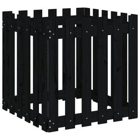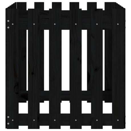 Garden Planter with Fence Design Black 60x60x60 cm Solid Wood Pine