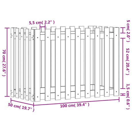 Garden Raised Bed with Fence Design White 100x50x70 cm Solid Wood Pine