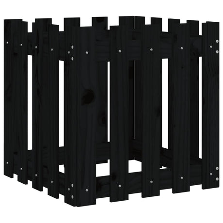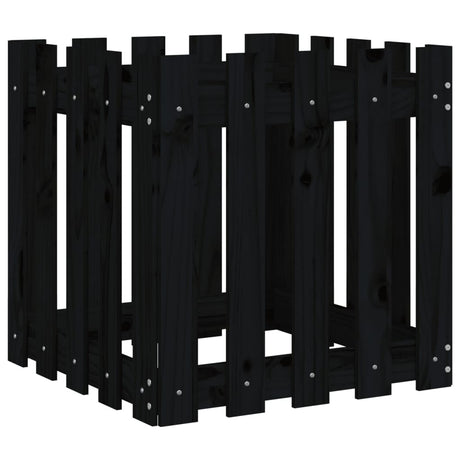 Garden Planter with Fence Design Black 50x50x50 cm Solid Wood Pine