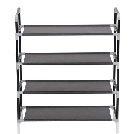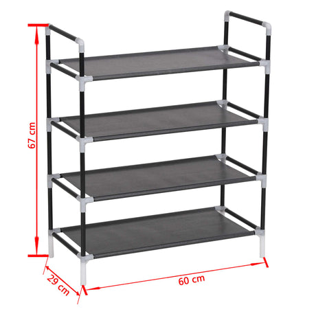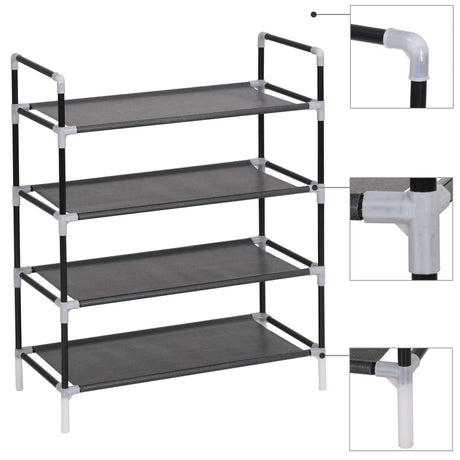 Shoe Rack with 4 Shelves Metal and Non-woven Fabric Black