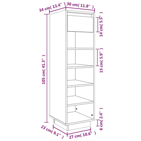 Shoe Cabinet White 30x34x105 cm Solid Wood Pine