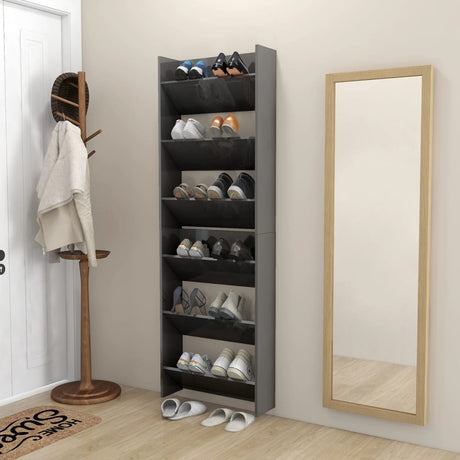 Wall Shoe Cabinets 2 pcs High Gloss Grey 60x18x90 cm Engineered Wood