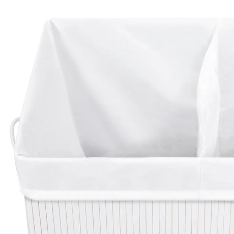 Bamboo Laundry Basket with 2 Sections White 100 L