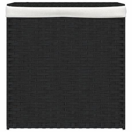 Laundry Basket with 2 Sections Black 53x35x57 cm Poly Rattan
