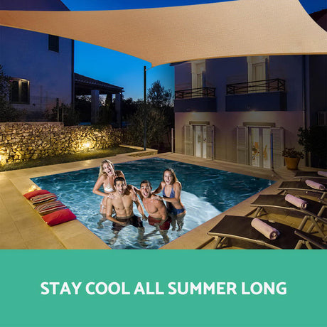 Instahut Shade Sail 5x5x5m Triangle 185GSM 95% Sand Shade Cloth