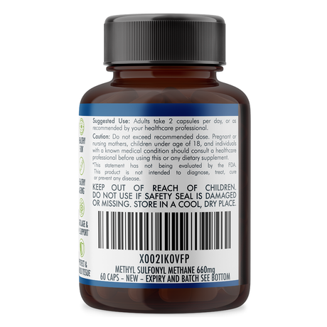 Pure MSM Capsules - Methyl Sulfonyl Methane - (660mg), 60 Vegan Capsules/1 Month