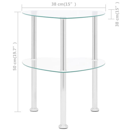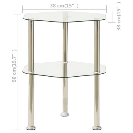 2-Tier Side Table Transparent 38x38x50 cm Tempered Glass